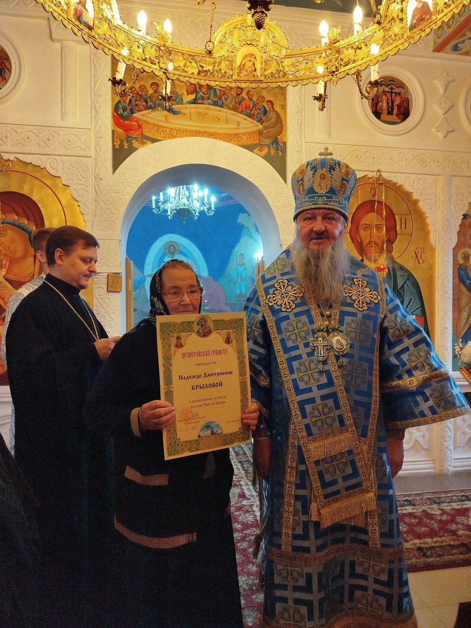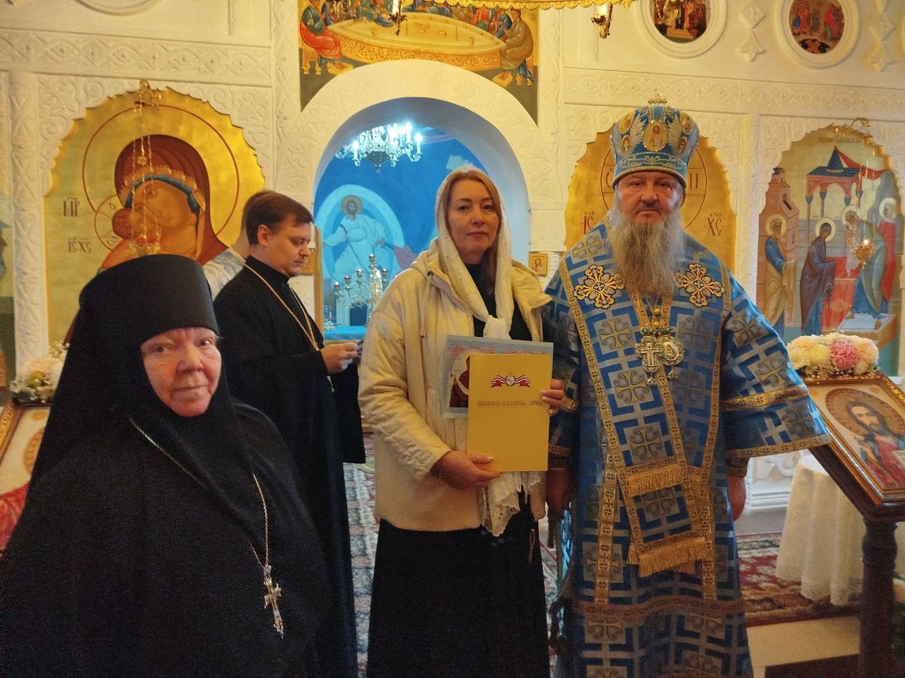 Владыка благословил Н. В. Дымченко на дальнейшую богоугодную деятельность, и вручил юбиляру приветственный адрес и памятный подарок.