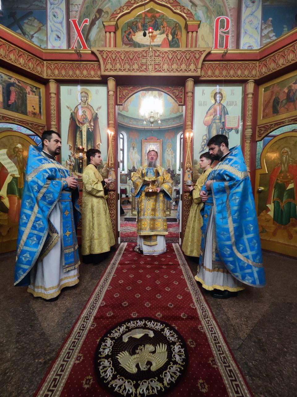 Высокопреосвященнейшему Владыке настоятелю сослужили клирик прихода иеромонах Иоанн (Трайто) и клирик кафедрального собора Рождества Христова диакон Геннадий Гнатюк.
