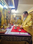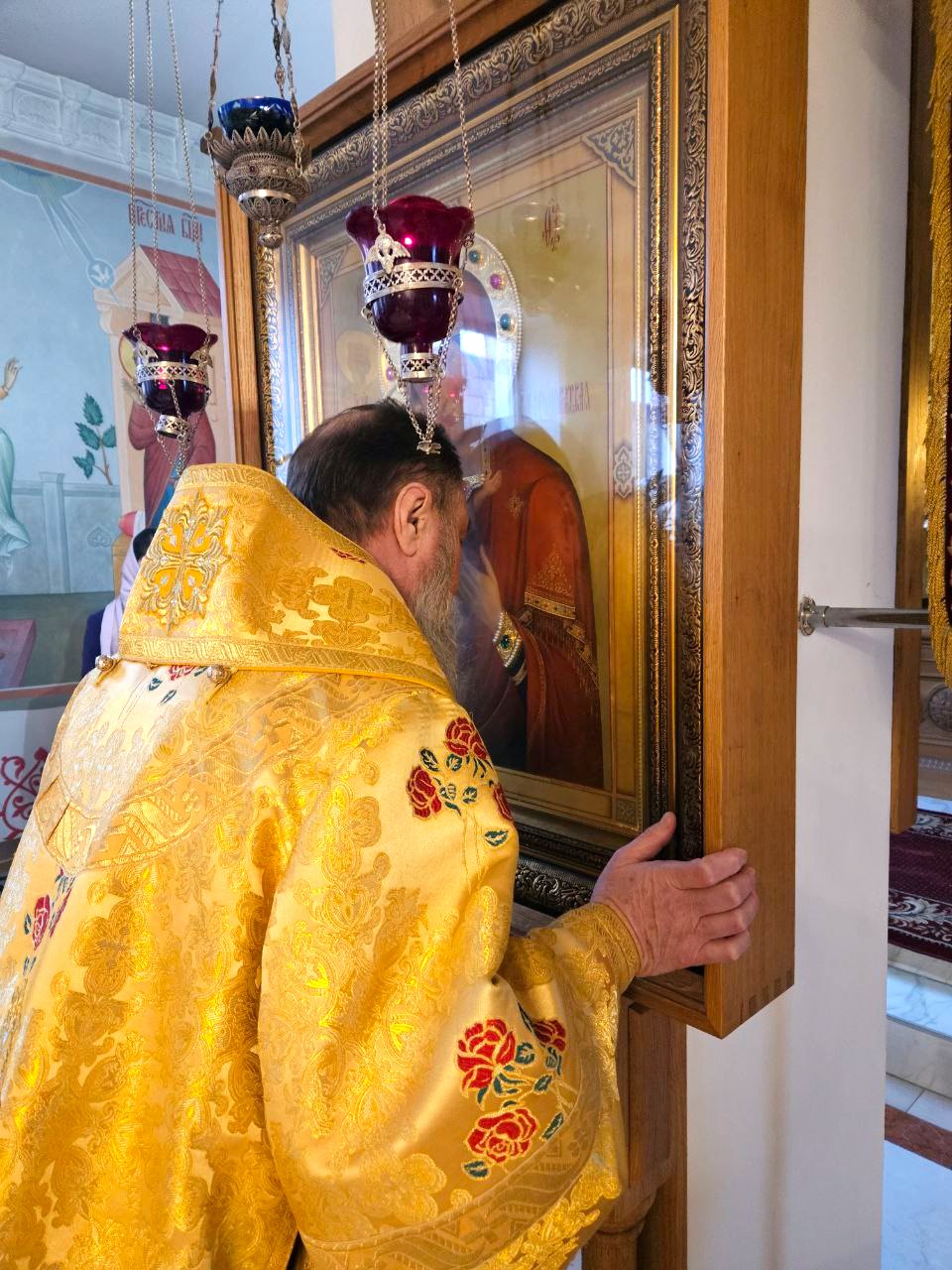 В завершение богослужения было совершено славление пред образом ныне прославляемого святителя Филарета Московского. Правящий Архиерей прочёл молитву этому Божию угоднику, после чего, под пение величания святителю, поклонился его честному образу.