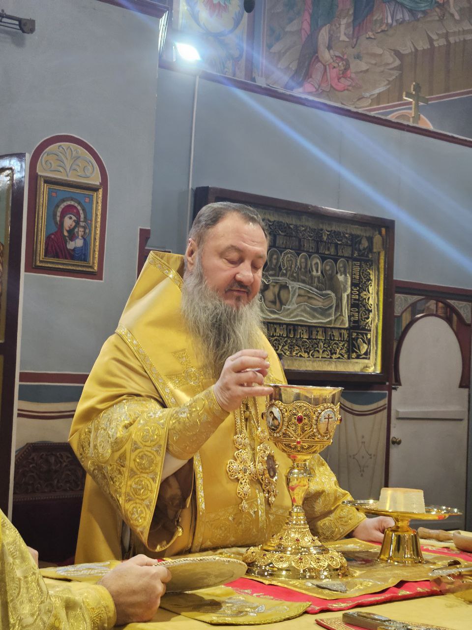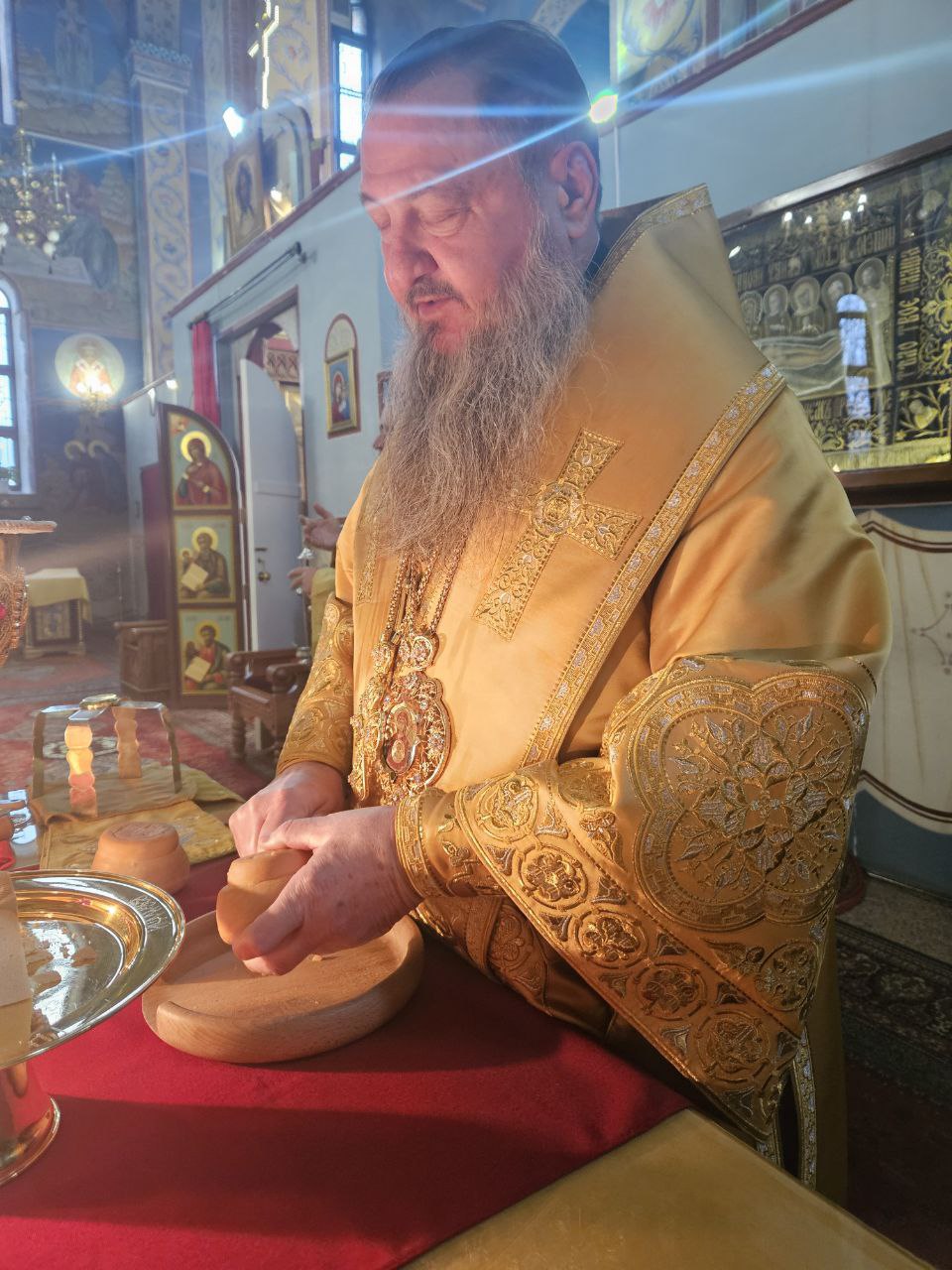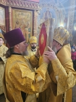 После полиелея архиепископ Савва поздравил прихожан с наступающим праздником и помазал духовенство и мирян освящённым елеем.