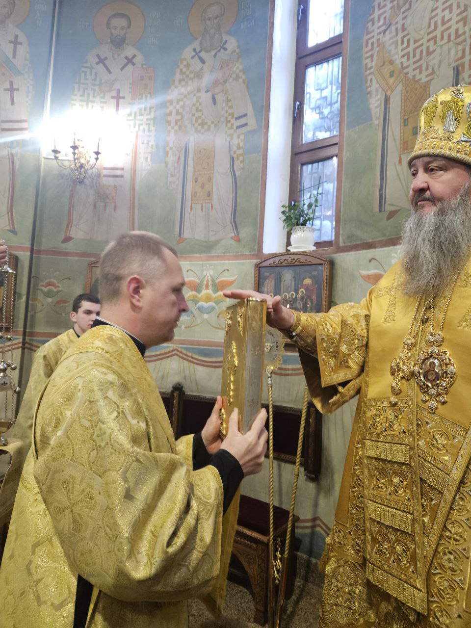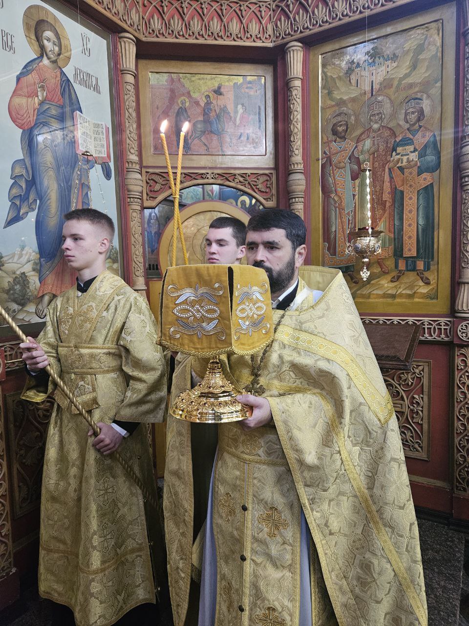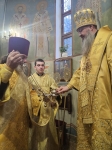 За богослужением Высокопреосвященнейшему Владыке настоятелю сослужил клирики кафедрального собора.