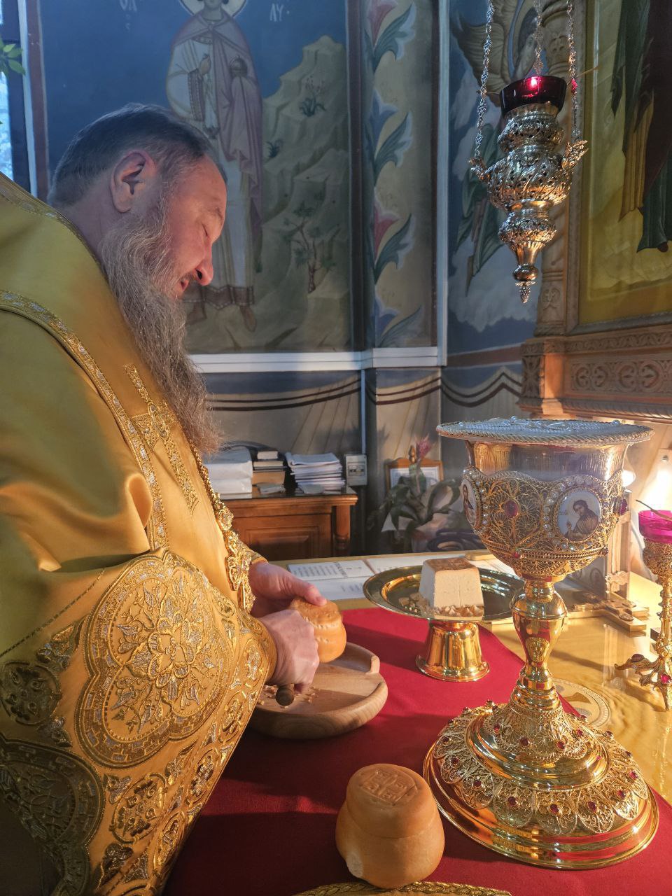 Высокопреосвященнейший Владыка объявил также о предстоящих на грядущей седмице богослужениях, после чего помазал духовенство и прихожан освящённым елеем.