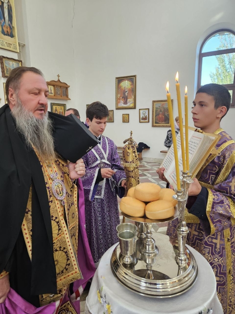 Архипастырю сослужили ключарь кафедрального собора Рождества Христова в Тирасполе протоиерей Павел Кузменых и соборный клирик диакон Геннадий Гнатюк, а также клирик Воздвиженского прихода иеромонах Иоанн (Трайто).