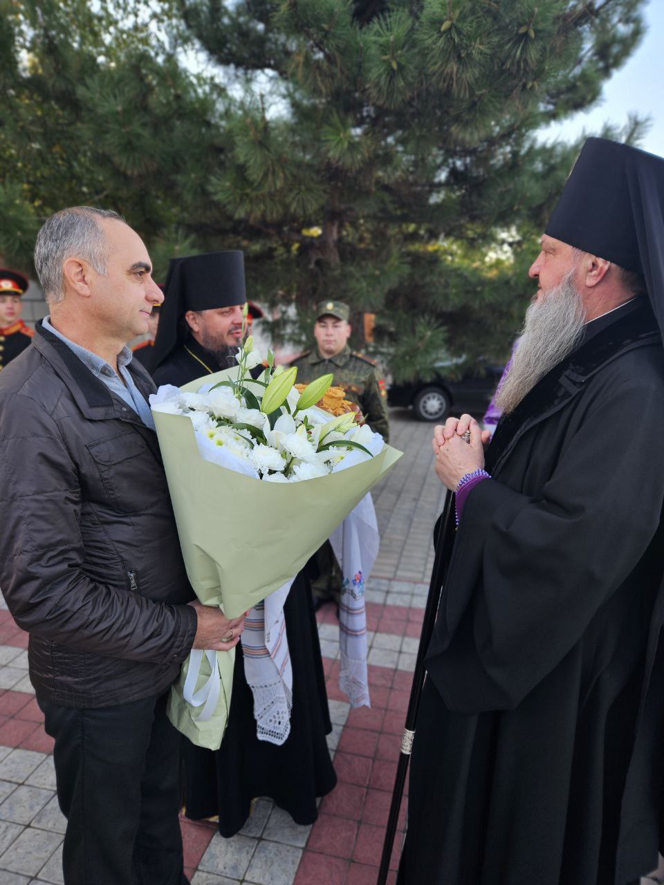 Затем Высокопреосвященнейшего Владыку с престольным праздником и днём рождения поздравили духовенство, представители Тираспольского суворовского военного училища, прихожане храма.