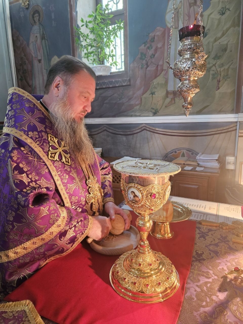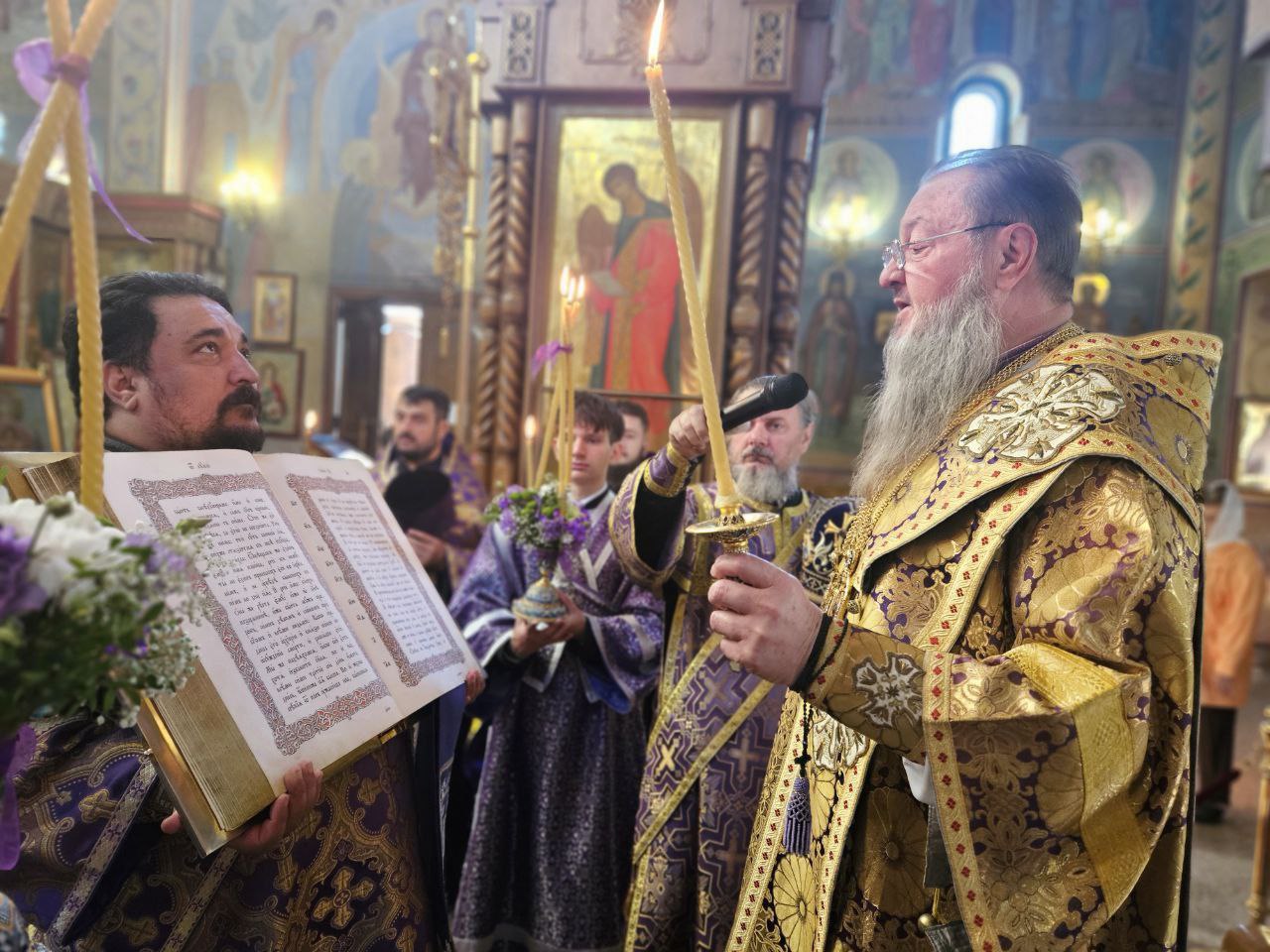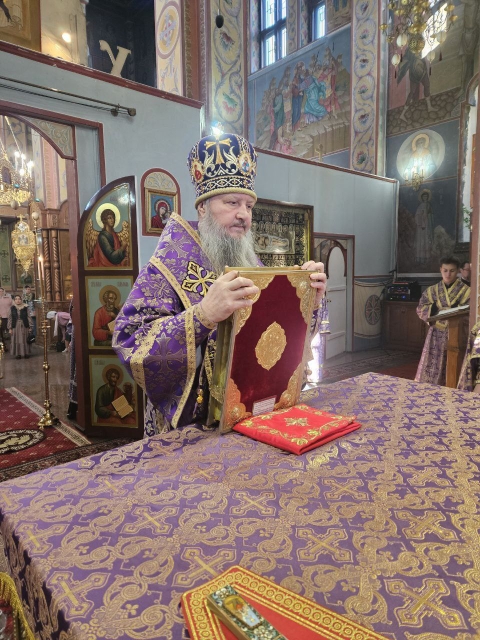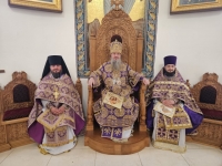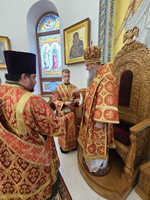 Его Высокопреосвященству сослужили ключарь кафедрального собора протоиерей Павел Кузменых, клирик храма иеромонах Иоанн (Трайто) и клирик кафедрального собора протодиакон Сергий Афтени.
