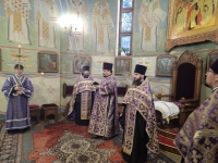 Его Высокопреосвященство также огласил расписание богослужений на предстоящую седмицу и совершил помазание освящённым елеем духовенства и всех молившихся за богослужением.