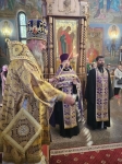По отпусте Божественной литургии духовенство во главе с Владыкой совершило славление ныне прославляемому Церковью Архистратигу Божию Михаилу пред его честны́м образом.