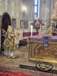 По отпусте литургии было совершено славление пред святыми и многоцелебными мощами угодника Божия святителя Дионисия, отошедшего ко Господу 17 сентября 1943 года и прославленного в лике святых решением Священного Синода Румынской Православной Церкви от 25 октября 2018 года.