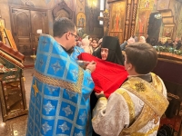 Высокопреосвященнейшему Владыке настоятелю сослужили клирик прихода иеромонах Иоанн (Трайто) и клирик кафедрального собора Рождества Христова протодиакон Сергий Афтени.