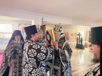 Правящему Архиерею сослужили клирик прихода иеромонах Иоанн (Трайто) и клирик кафедрального собора Рождества Христова протодиакон Сергий Афтени.