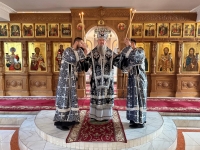 За богослужением Правящему Архиерею сослужили ключарь и клирики кафедрального собора. Вместе с духовенством и прихожанами Владыка вознёс молитвы, готовя верующих к празднованию Крестопоклонной недели, которая занимает особое место в середине Святой Четыредесятницы.