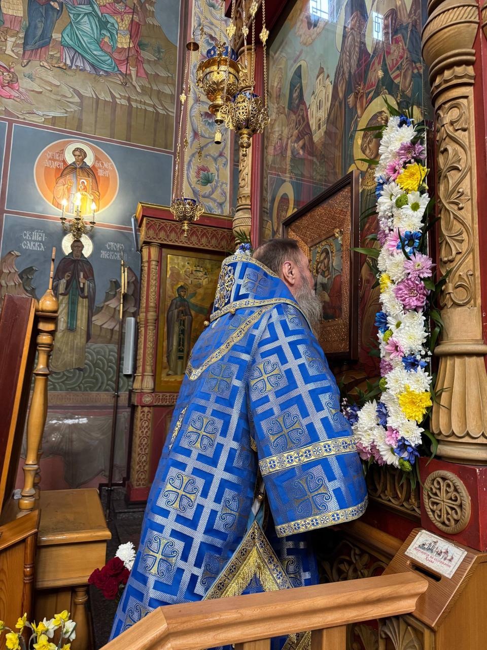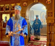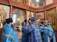 Во время полиелея Правящий Архиерей и сослужившее духовенство вышли к чтимому списку Феодоровской иконы Божией Матери. После совершения положенных уставом молитвословий все молившиеся в храме с благоговением приложились к святыне, испрашивая заступничества и помощи Пресвятой Богородицы.