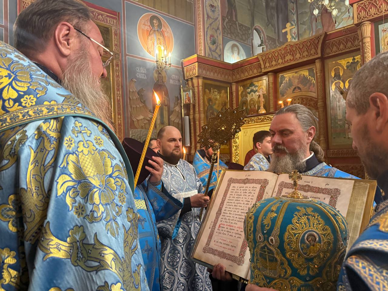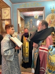 Выйдя на полиелей к местночтимому образу Божией Матери «Взыскание погибших» Тираспольская и прочитав положенный уставом отрывок из Святого Евангелия, Архипастырь помазал освящённым елеем сослужившее духовенство и всех молившихся за богослужением.