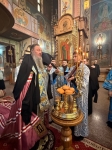 Его Высокопреосвященству сослужили ключарь и клирики кафедрального собора. В сей день, по случаю двенадцатой годовщины преставления протоиерея Владимира Скоробагатого, за богослужением возносились особые прошения об упокоении души приснопамятного пастыря, несшего, в своё время, послушание также и в кафедральном соборе.