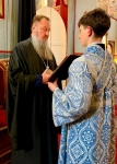 На малом входе по благословению Архипастыря одному из несущих послушание архиерейского иподиакона было благословлено ношение ораря, что стало для него особым знаком поощрения за усердие при архиерейском богослужении.