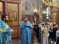 Высокопреосвященнейшему Владыке сослужили ключарь и духовенство кафедрального собора, который был наполнен молящимися, пришедшими в этот день вознести хвалу Пресвятой Владычице и с особым усердием обратиться к Ней в молитве, испрашивая заступничества и помощи в дни Великого поста.