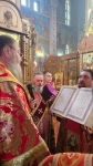 Песнопения Божественной литургии исполнил хор под управлением клирика кафедрального собора Рождества Христова протодиакона Вячеслава Лукановского.