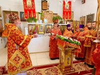 За богослужением Высокопреосвященнейшему Владыке сослужили клирики Воздвиженского прихода и кафедрального собора Рождества Христова. Богослужебные песнопения исполнил хор под управлением протодиакона Вячеслава Лукановского.
