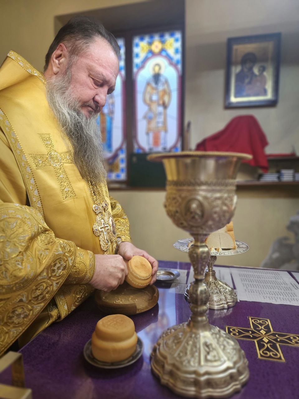 На полиелее Архипастырь прочёл воскресный отрывок из Евангелия от Матфея (Мф. 28:16–20). Затем Владыка Савва обратился к молящимся с архипастырским словом, поздравив всех с наступающим воскресным днём. Огласив порядок богослужений на грядущей седмице, Его Высокопреосвященство помазал освящённым елеем причт и паству.
