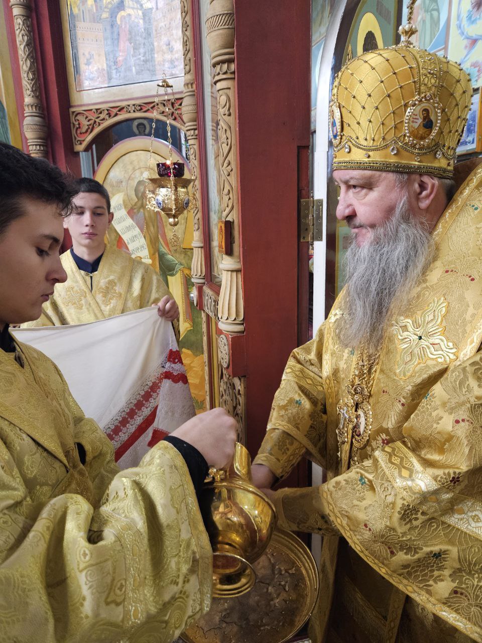 Его Высокопреосвященству сослужили благочинный Бендерского округа протоиерей Михаил Лунгу, духовенство кафедрального собора, клирик храма Воздвижения Креста Господня иеромонах Иоанн (Трайто) и проходящий богослужебную практику иеромонах Никанор (Цверкун).