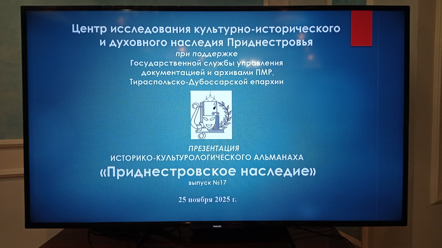18 ноября во Дворце Республики состоялась презентация 17-го выпуска историко-культурологического альманаха «Приднестровское наследие». Альманах издаётся Центром исследования культурно-исторического и духовного наследия Приднестровья при поддержке Тираспольско-Дубоссарской епархии и Государственной службы управления документацией и архивами ПМР.