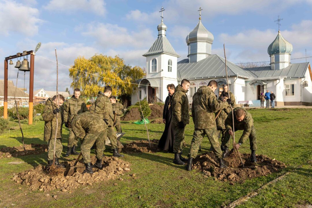 Активное участие в высадке саженцев катальпы и елей приняли суворовцы во главе с начальником Тираспольского Суворовского военного училища полковником Сергеем Александровым, которые совместно с работниками культуры трудились над благоустройством церковных территорий. МАРКИС представляли председатель организации Ольга Короткова и народная артистка ПМР Лидия Сизенёва. Молитвенно поддерживал благие труды благочинный Григориопольского района, настоятель малаештского Покровского храма протоиерей Марин Сорочан.