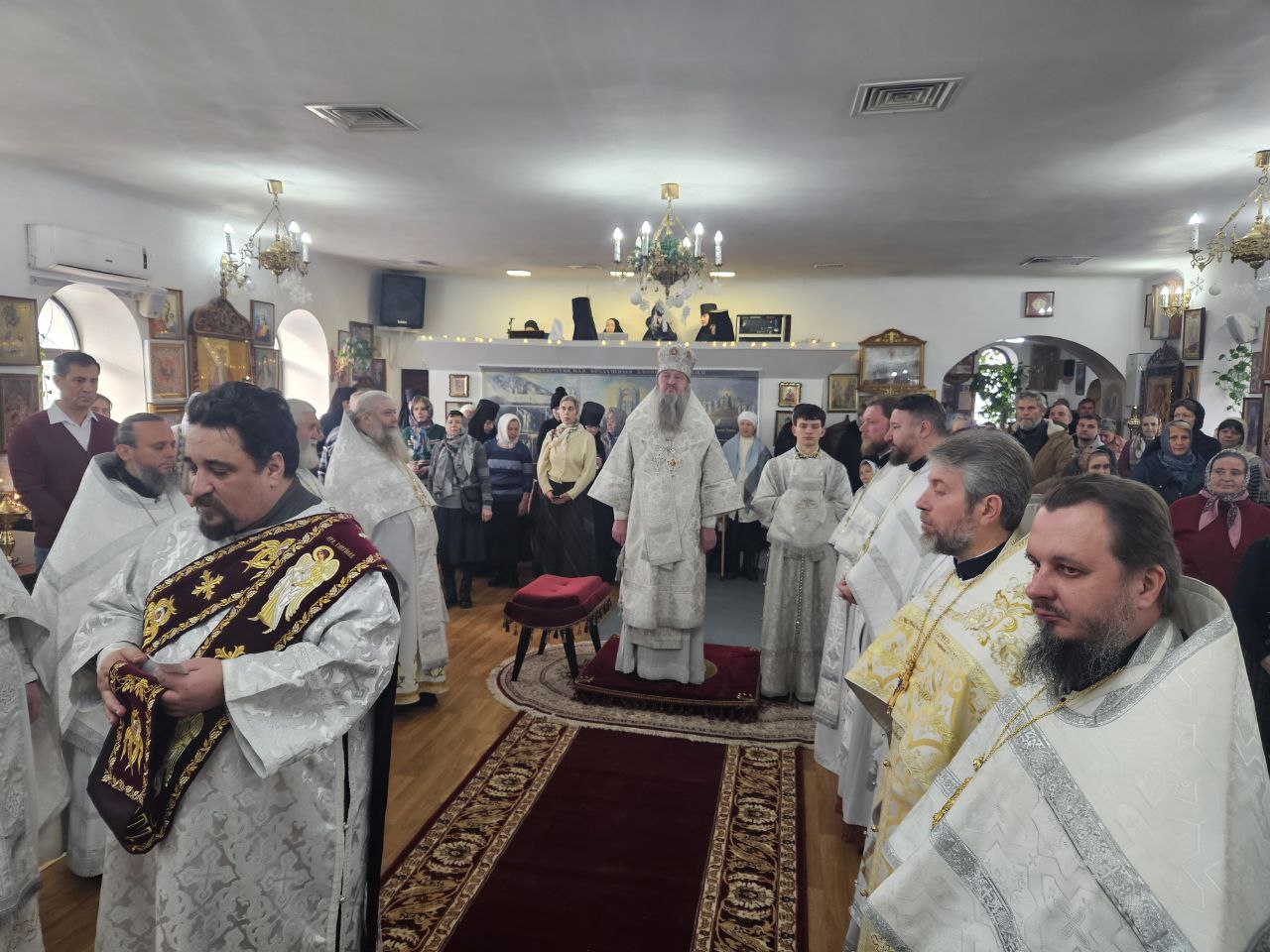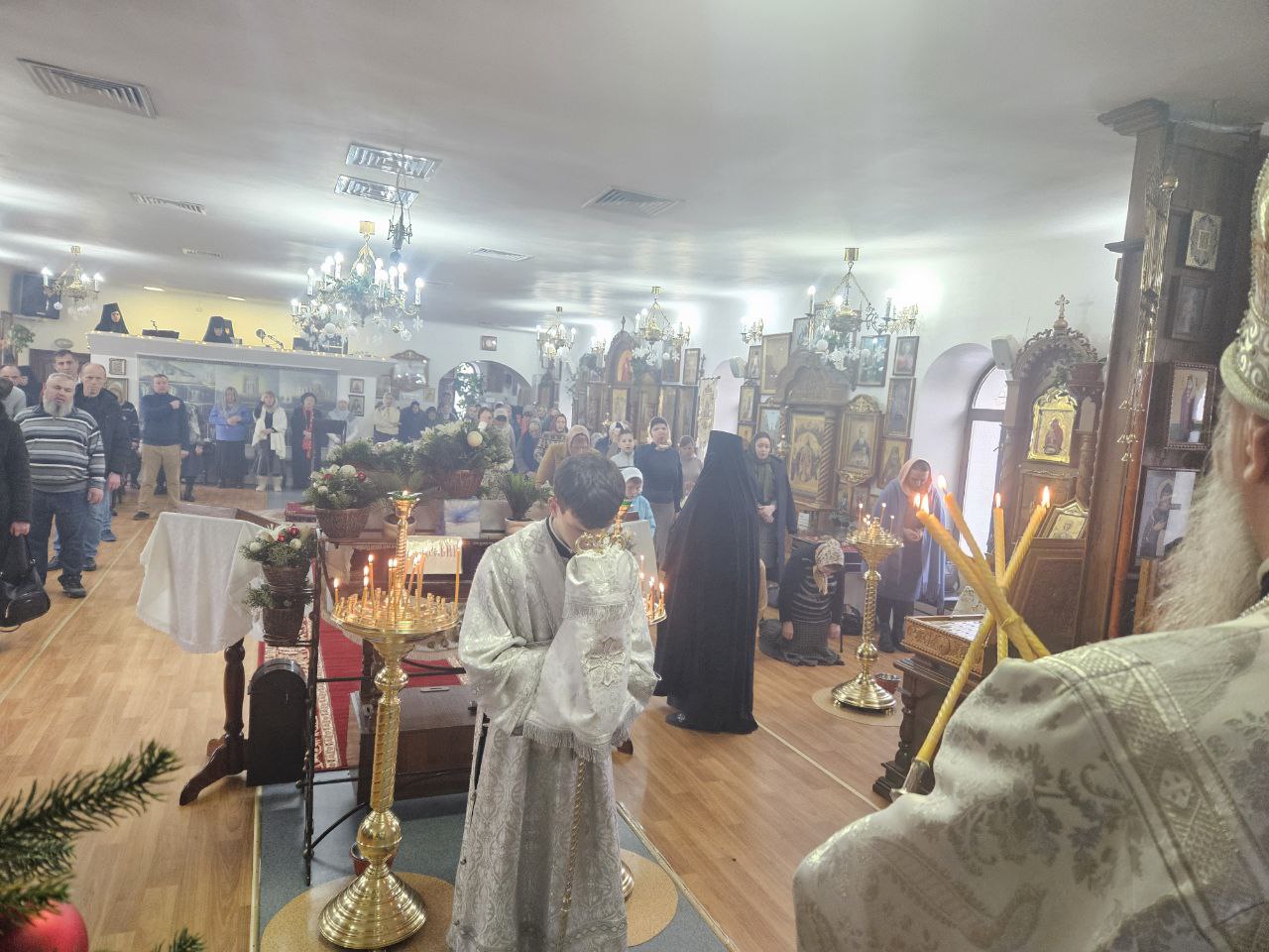 За богослужением Высокопреосвященнейшему Владыке настоятелю сослужили клирик прихода иеромонах Иоанн (Трайто) и клирик кафедрального собора Рождества Христова протодиакон Сергий Афтени. Совместная молитва духовенства и многочисленных прихожан стала духовным приготовлением к грядущему празднику Рождества Христова.