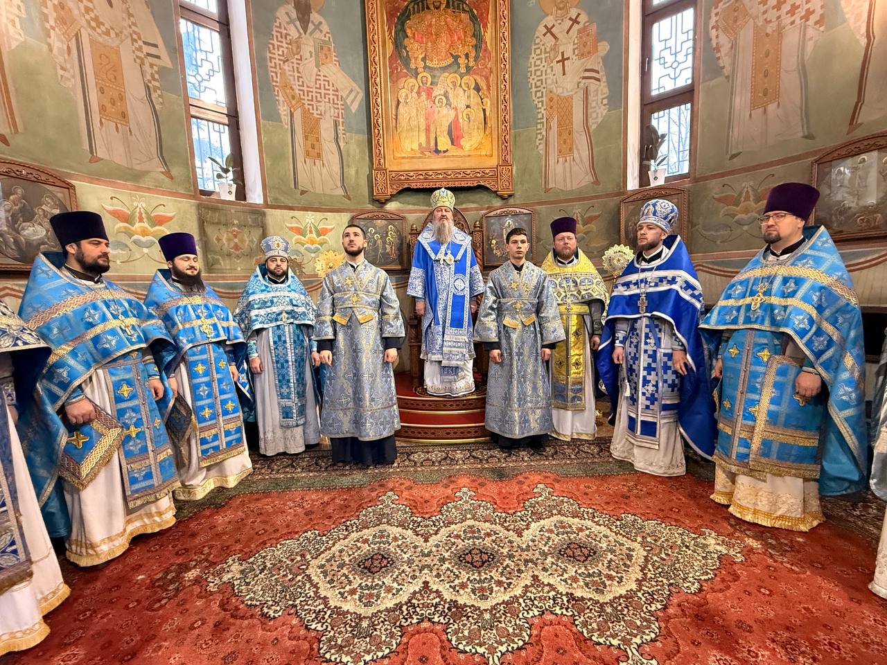 Высокопреосвященнейшему Владыке сослужили ключарь и клирики кафедрального собора. За богослужением молились прихожане и паломники, собравшиеся в кафедральном храме для молитвенного прославления Господа в день великого церковного торжества.