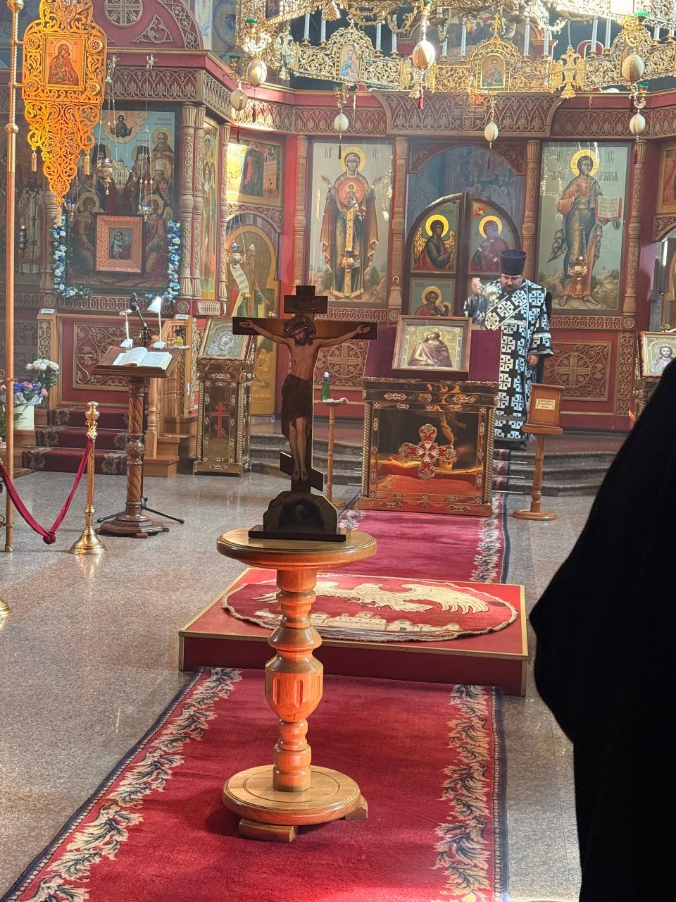 В соответствии с церковным уставом были совершены утреня, часы 1-й, 3-й, 6-й и 9-й, изобразительны и вечерня. Богослужебные тексты читали Высокопреосвященнейший Владыка Савва, духовенство кафедрального собора и храма Воздвижения Креста Господня.