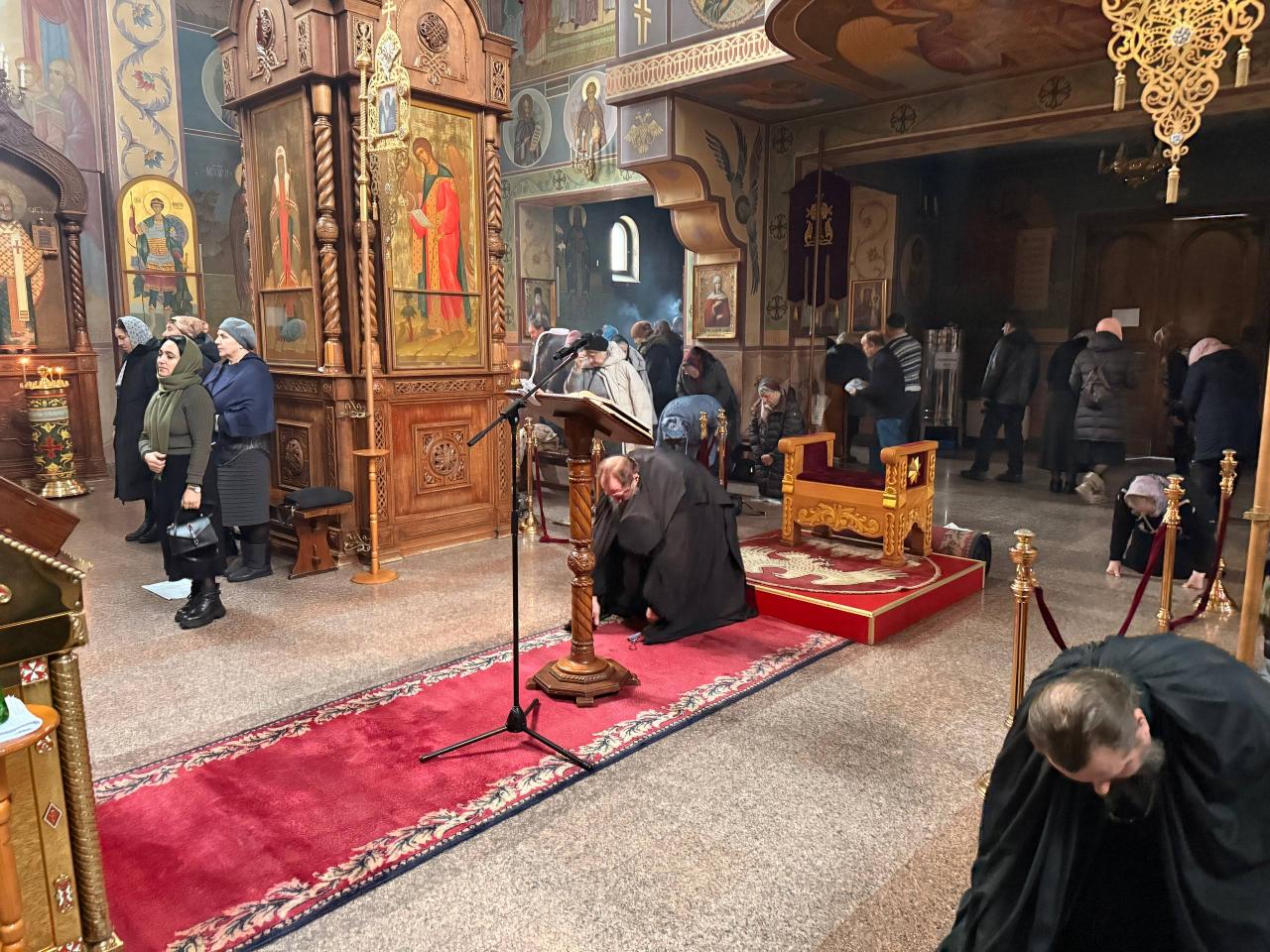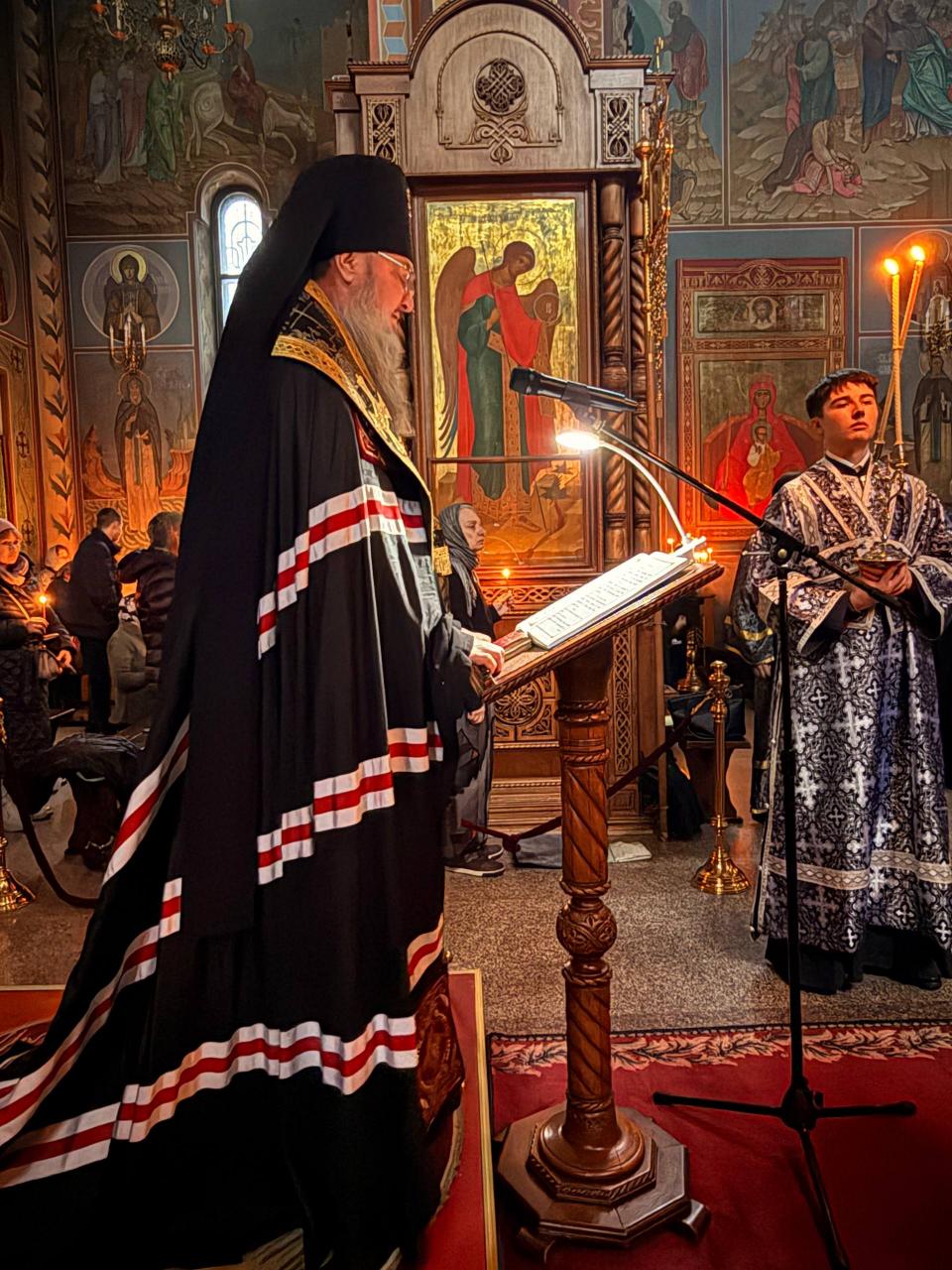 За богослужением молились клирики кафедрального собора, Центрального благочиния и многочисленные верующие. По отпусте вечерни Правящий Архиерей прочитал молитвы на начало Великого поста, после чего обратился к пастве с архипастырским словом, напомнив о духовном смысле Прощёного воскресенья и необходимости примирения как основы подлинного христианского подвига.