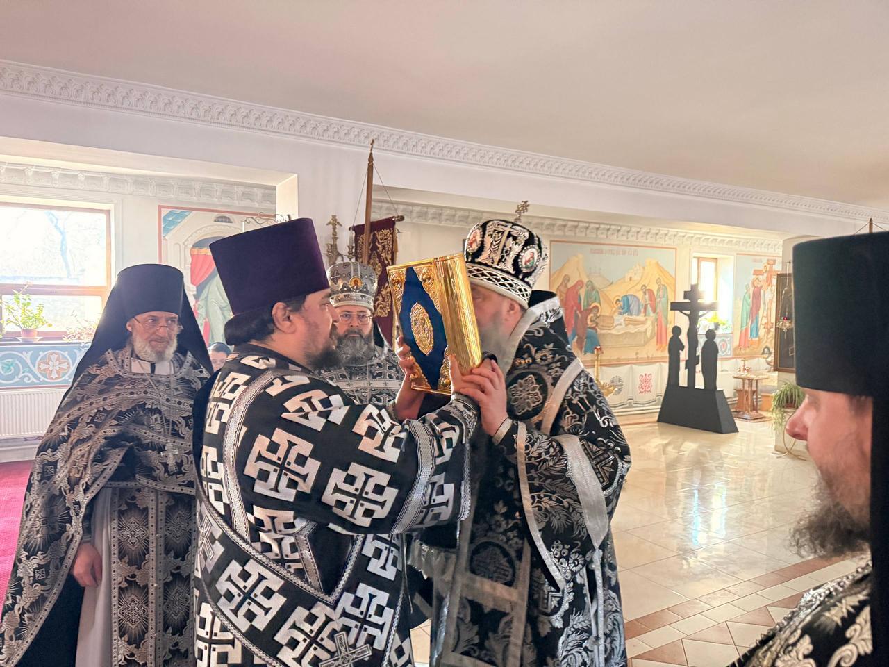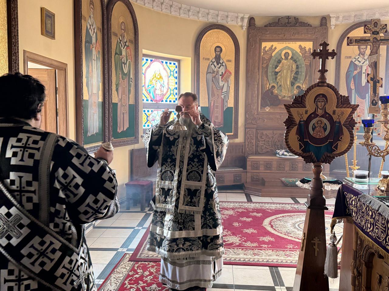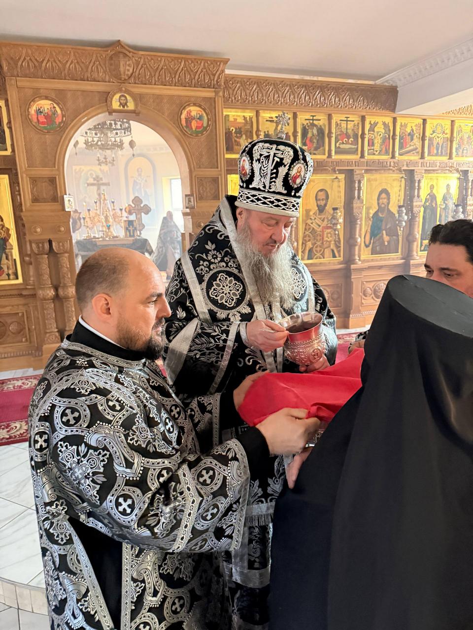 За Литургией Преждеосвященных Даров Правящему Архиерею сослужили клирики Свято-Введенско-Пахомиева монастыря, Воздвиженского прихода и кафедрального собора Рождества Христова протоиерей Анатолий Каушан, иеромонахи Иоанн (Трайто) и Симеон (Лупашко), протодиакон Сергий Афтени.