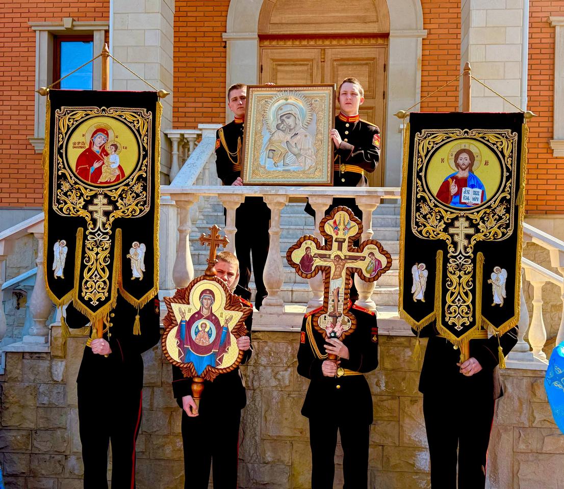 По завершении Божественной литургии Архипастыри и сослужившее духовенство вышли к чтимому списку Феодоровской иконы Божией Матери, хранящемуся в храме как великая святыня. Перед святым образом было совершено славление, после чего состоялся крестный ход вокруг храма.