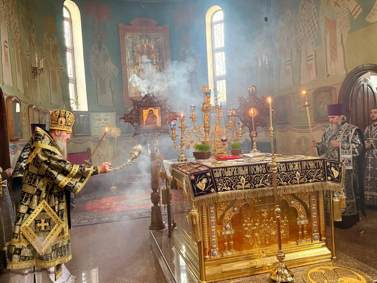 В Великую среду Его Высокопреосвященство совершил Литургию Преждеосвященных Даров