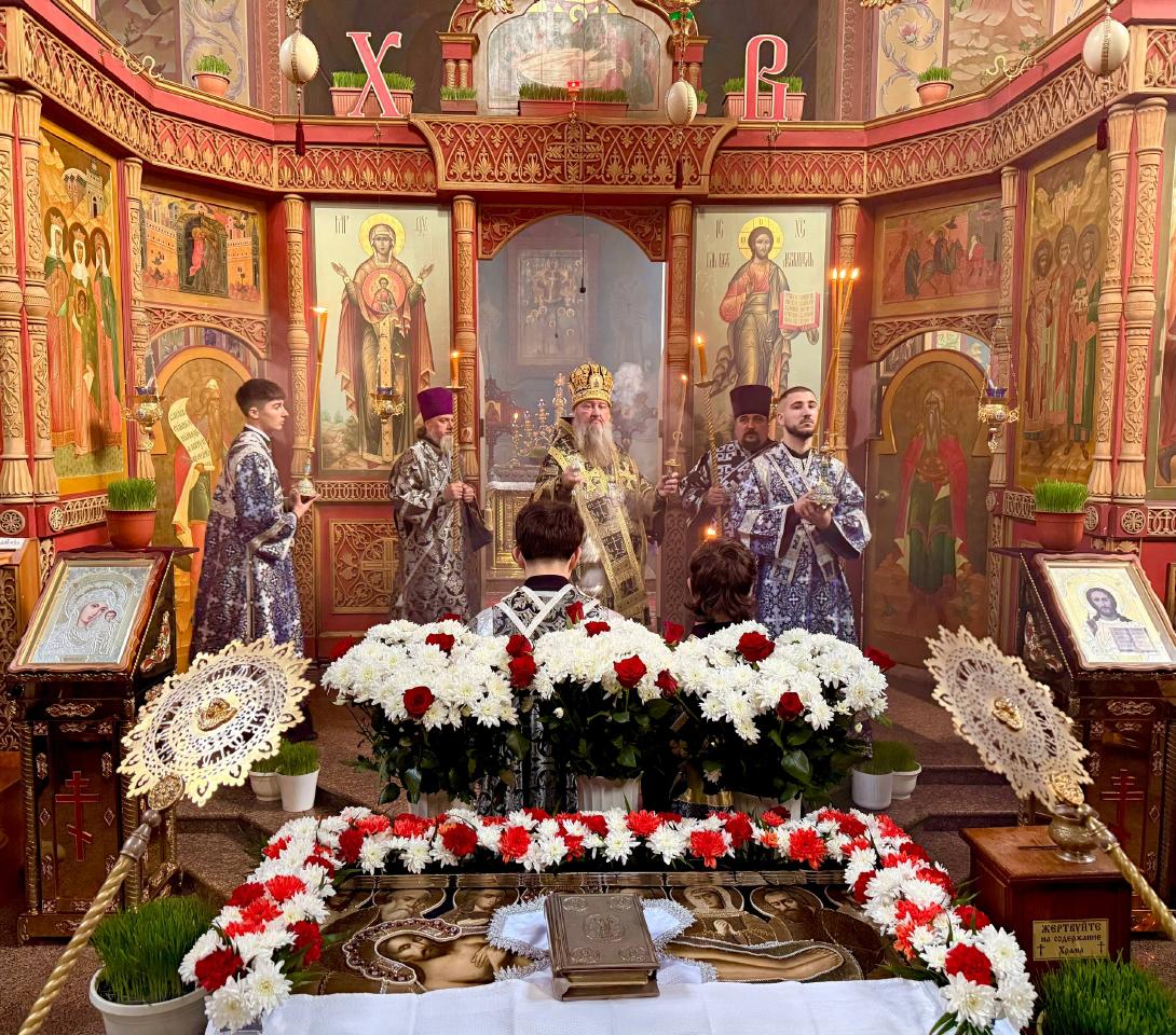 10 апреля, в Великую Пятницу – день воспоминания Святых спасительных Страстей и крестной смерти Господа нашего Иисуса Христа, – в кафедральном соборе Рождества Христова в Тирасполе Его Высокопреосвященство архиепископ Тираспольский и Дубоссарский Савва совершил вечерню с выносом Плащаницы и утреню с чином погребения Спасителя.