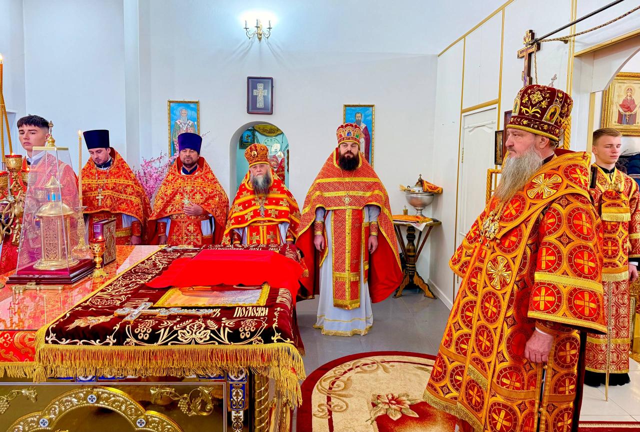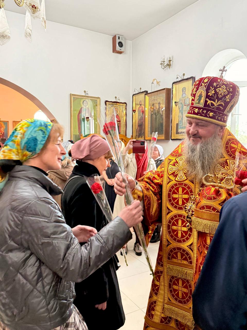 По окончании Божественной литургии было совершено славление Воскресению Христову. Архиепископ Савва окропил молящихся святой водой и обратился к собравшимся с архипастырским словом, напомнив о подвиге святых жён-мироносиц, явивших пример верности, жертвенной любви и преданности Господу даже в самые тяжёлые минуты Его земной жизни.