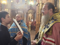 Высокопреосвященнейшему Владыке настоятелю сослужили клирик храма иеромонах Иоанн (Трайто) и клирик кафедрального собора диакон Василий Донченко.