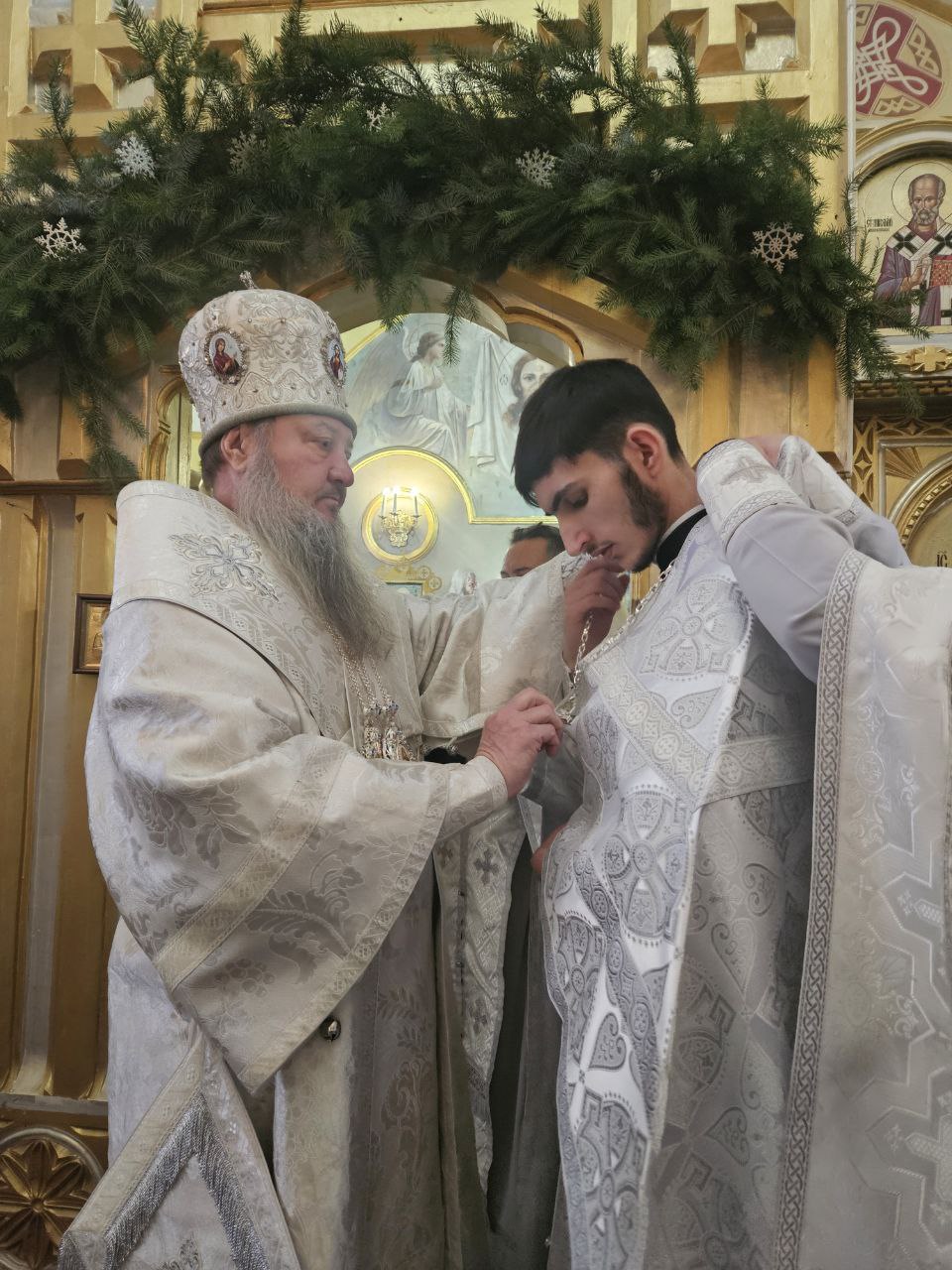 Богослужение прошло в особой рождественской духовной атмосфере, исполненной молитвенной тишины и благодарения Богу за дар воплощения Сына Божия. В этот праздничный день верующие с благоговением возносили молитвы ко Господу, прославляя Его Рождество и молитвенно почитая подвиг святого апостола и первомученика Стефана.