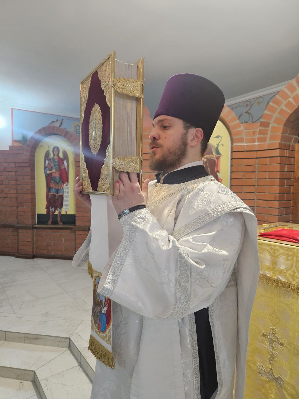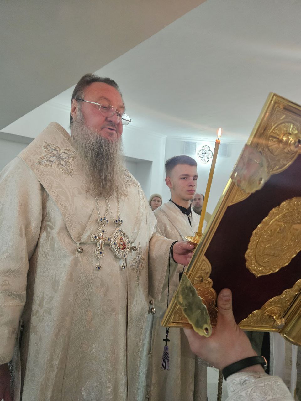 В знак архипастырского внимания Правящий Архиерей вручил настоятелю храма закладку для Святого Евангелия, выразив благодарность за усердные пастырские труды и заботу о приходе.